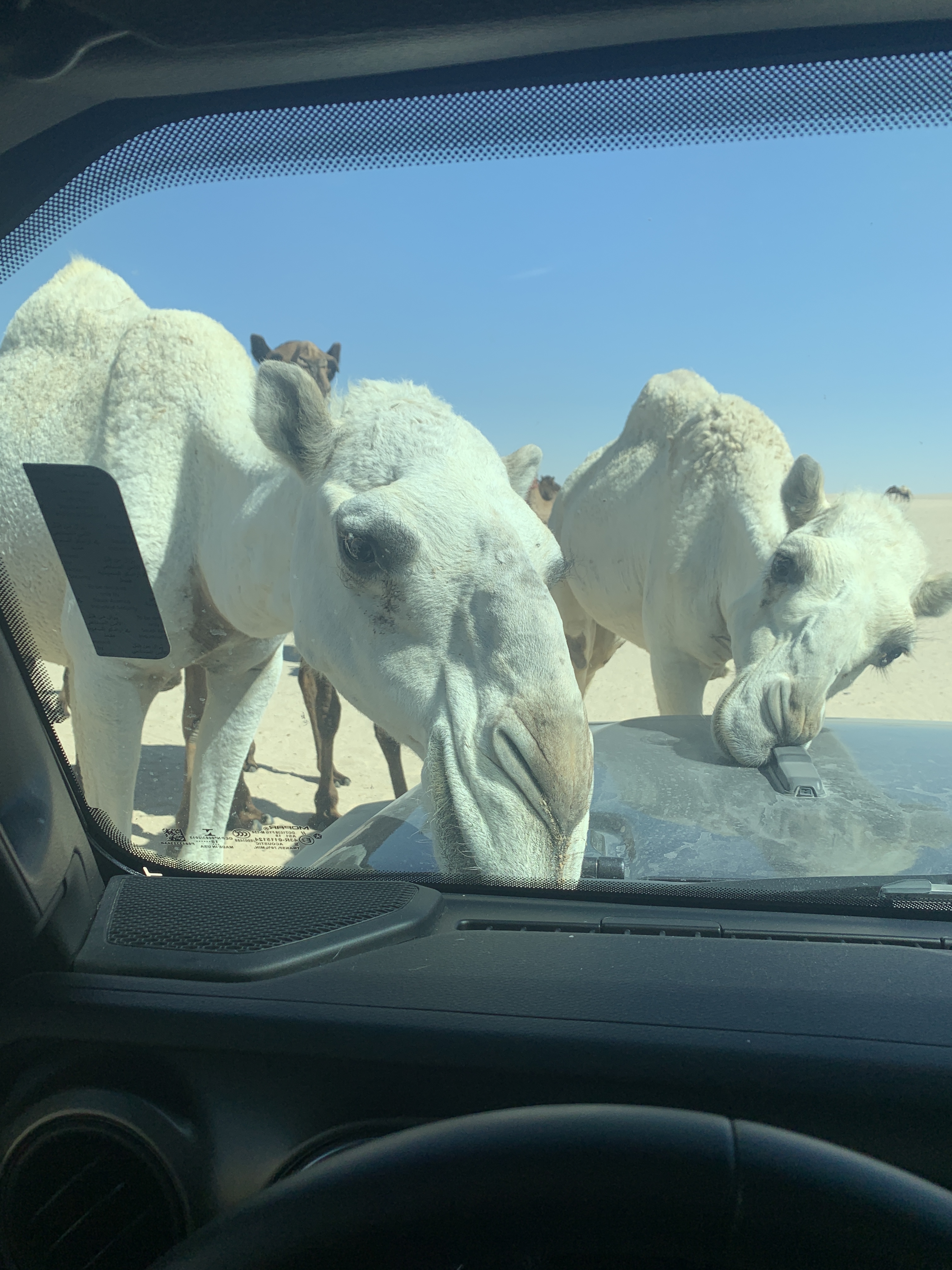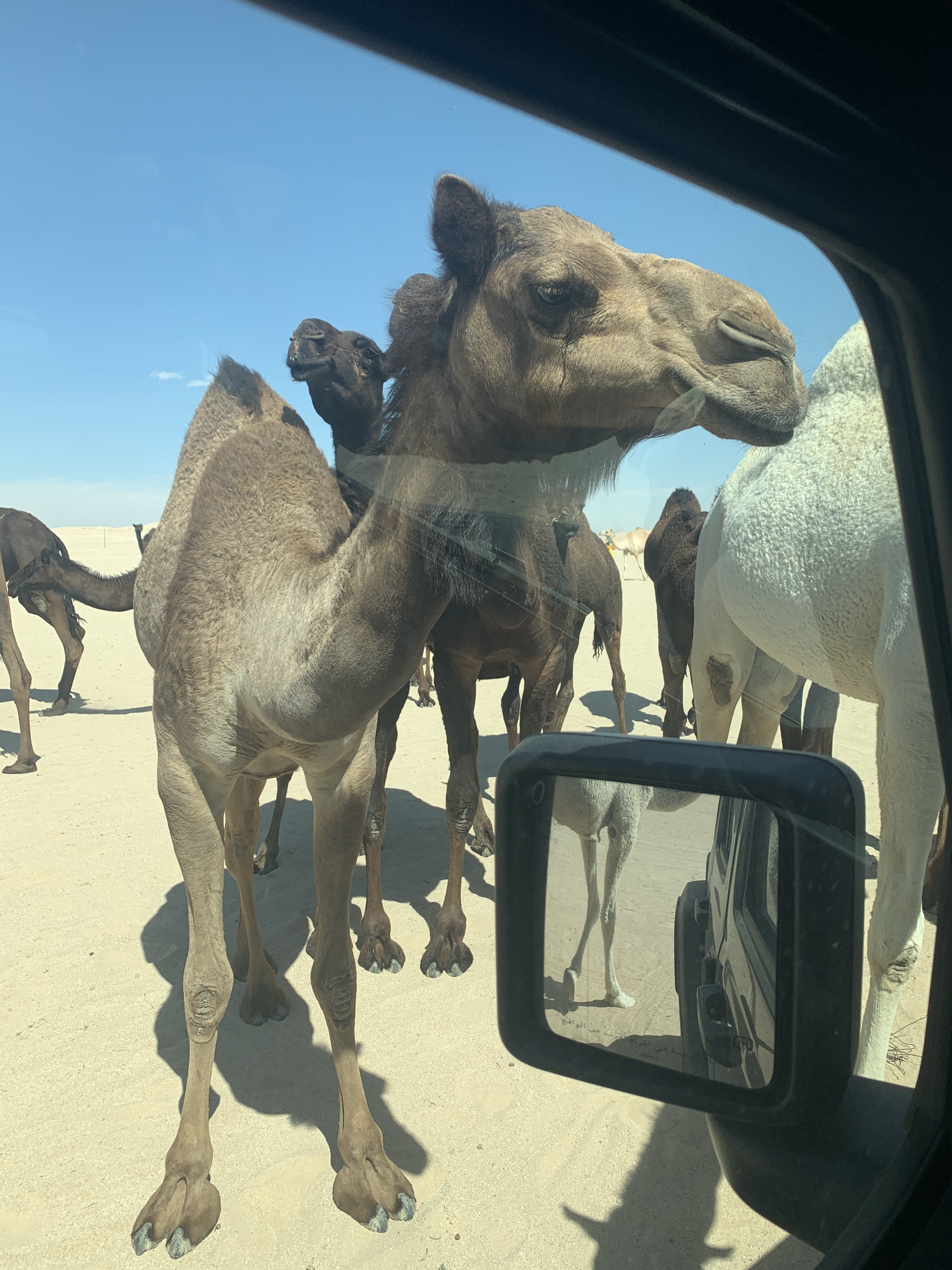 On the trip home, we ran into a herd of camels which surrounded the Jeep. The camels were extremely curious.